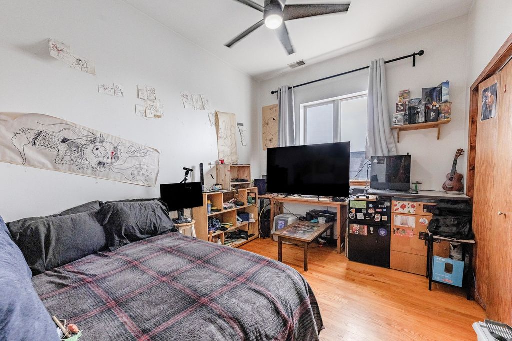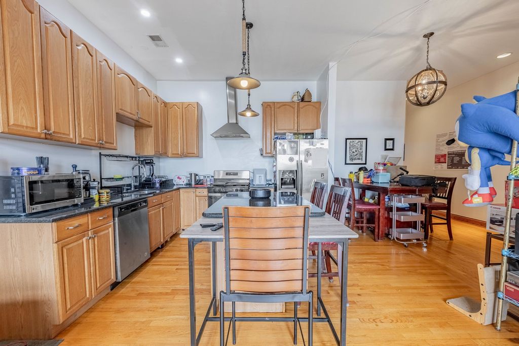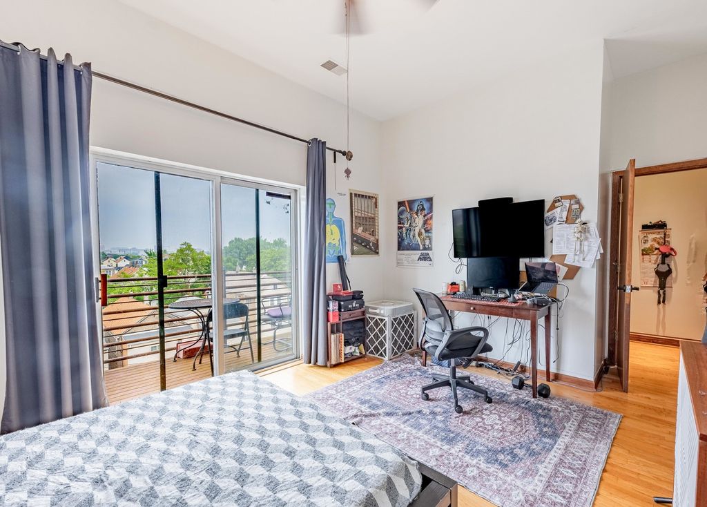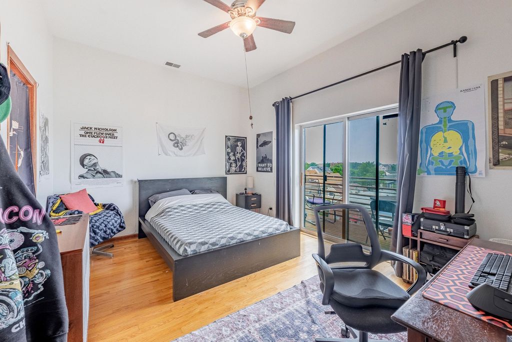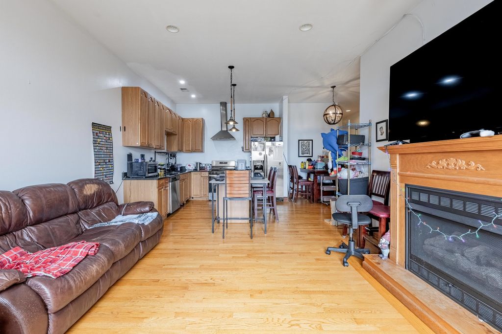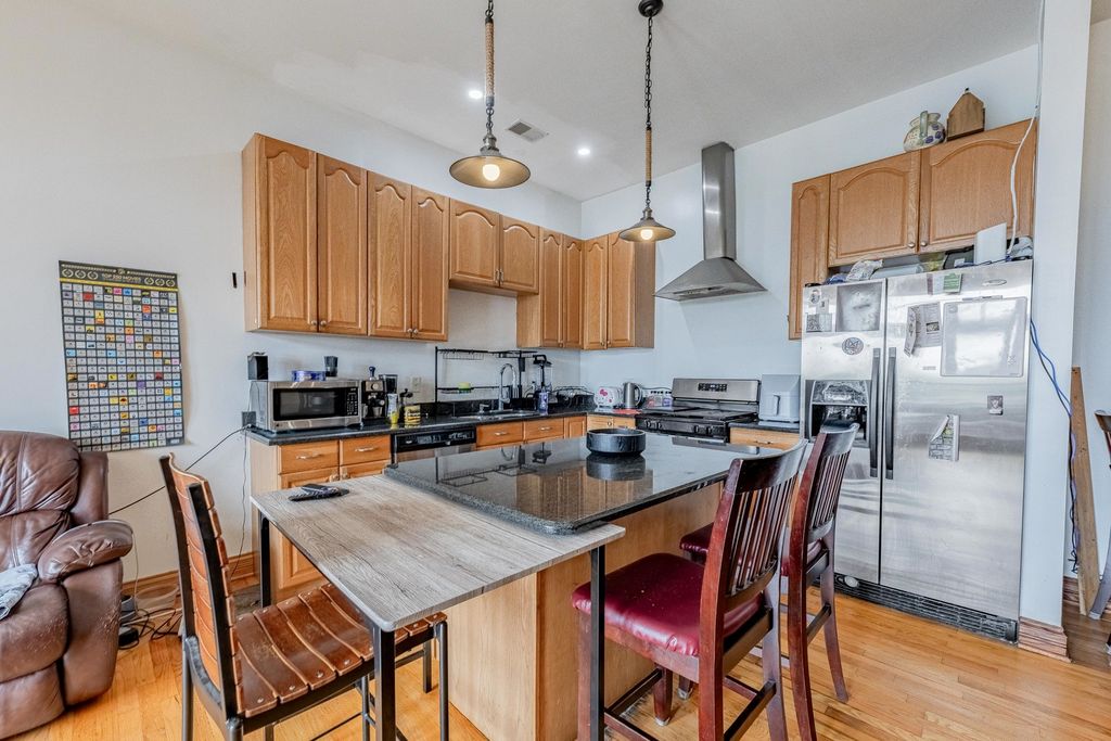 WELCOME TO PILSEN! One of Chicago's most vibrant and culturally rich neighborhoods just minutes from downtown. As you walk up to this top-floor, you're greeted by an open layout unit with hardwood floors, a cozy fireplace, and abundant natural light pouring in from both the front and back balconies. The spacious living and dining area flows seamlessly into the modern kitchen, featuring 42" cabinets, an island with sleek black granite countertops, stainless steel appliances, and plenty of storage, perfect for both cooking and entertaining! Down the hall, you'll find three well-sized bedrooms, including a primary suite designed for relaxation. It boasts a large walk-in closet, its own private back balcony, and a luxurious in-suite bathroom complete with a Jacuzzi tub and separate standing shower. Additional perks include in-unit laundry, ample closet space, and dedicated parking. This renter-friendly building is great for both homeowners and investors. With close proximity to highways, public transportation, and a wide array of local restaurants, shops, and parks, you'll love calling this Pilsen gem HOME.