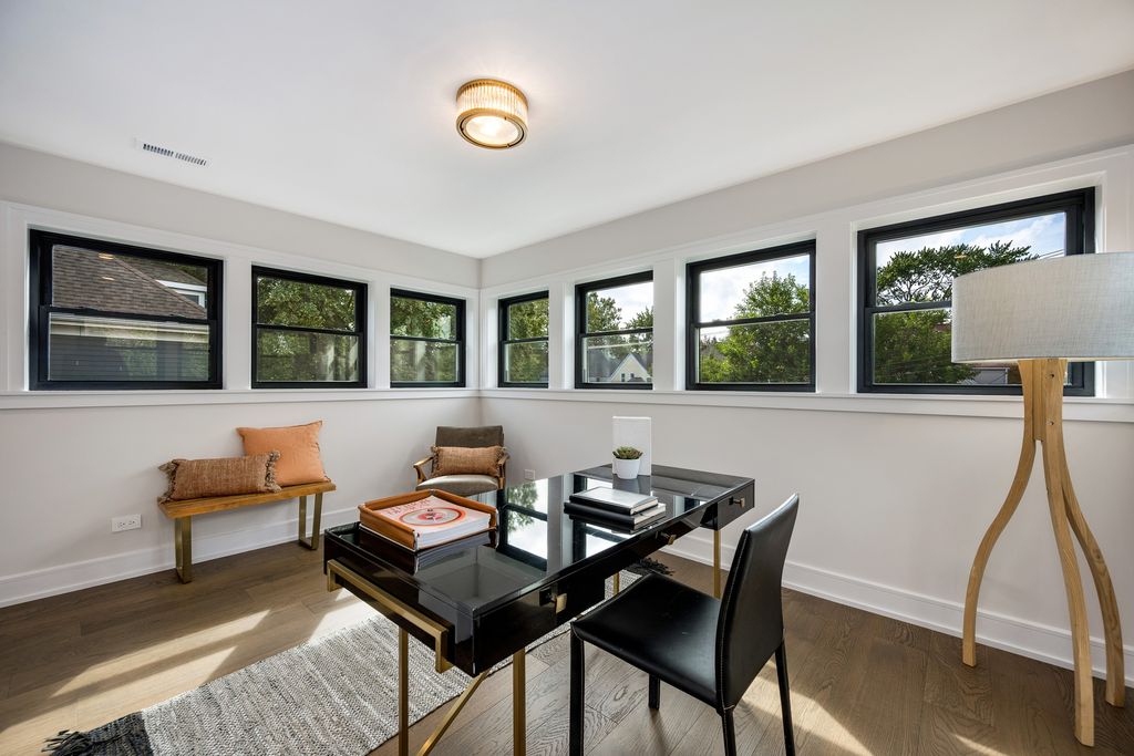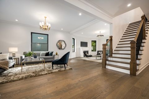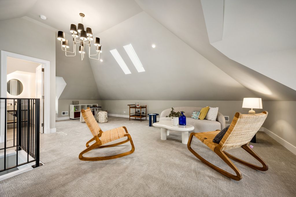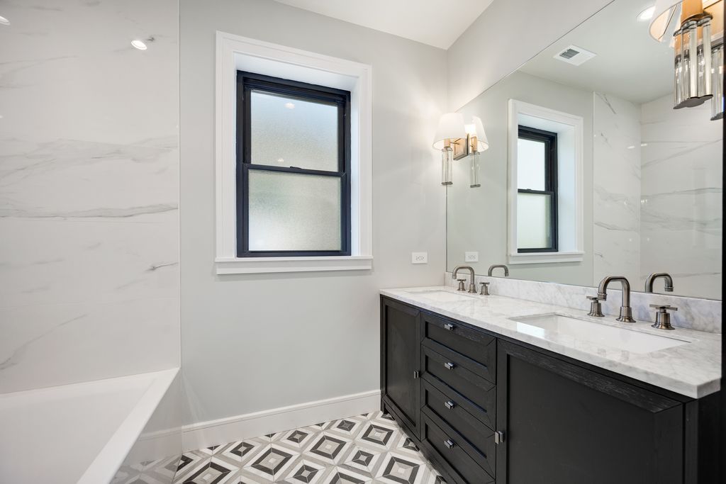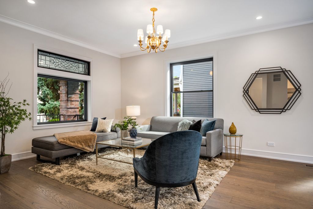 Nestled on an expansive 50 x 125 double lot, this exquisitely restored and professionally designed by Daniela Guini Interior Design, American Four-Square residence offers over 5,000 square feet of sophisticated living across four impeccably finished levels. With 5 bedrooms and 4.1 bathrooms, the home masterfully blends timeless architectural charm with the comforts of contemporary living. From the moment you step inside, you're welcomed by historic character-restored original chandeliers, a classic built-in entry hutch, and stunning stained-glass windows. The main level is graced with soaring ceilings, custom millwork, and rich hardwood floors, flowing seamlessly through multiple living and dining areas. At the heart of the home lies a sun-drenched, entertainer's kitchen featuring a premium Wolf/Sub-Zero appliance suite, bespoke cabinetry, and luxurious Taj Mahal quartzite countertops. Just beyond, a full-size custom pantry, mudroom, and coat closet offer both convenience and style. The second floor hosts four spacious bedrooms, all thoughtfully positioned on the same level, along with a well-appointed guest bath boasting a double vanity, soaking tub, and separate walk-in shower. The primary suite is a serene retreat, complete with custom built-ins, a generous walk-in closet, and a spa-inspired bath featuring heated floors, dual vanities, and a dramatic wet room with soaking tub and expansive glass-enclosed shower. The finished attic level, bathed in natural light from skylights and equipped with its own full bath, offers flexible space ideal for a guest suite, home office, or creative studio. The fully dug-out lower level enhances functionality with an additional bedroom and full bath, a large recreation area, utility room, and a charming wine cellar. Step outside to enjoy the oversized backyard-perfect for entertaining, gardening, or peaceful relaxation. A stately brick 3-car garage completes this exceptional offering. Located in the historic enclave once known as Kimball Farms, this distinguished Logan Square home is just three blocks from the Blue Line, Logan Theatre, acclaimed restaurants, the vibrant farmers market, and more. This is a rare opportunity to own a piece of architectural history-reimagined with intention, crafted with care, and ready to welcome its next chapter.