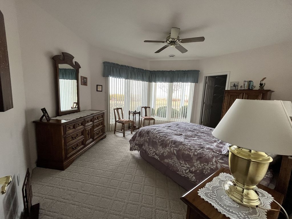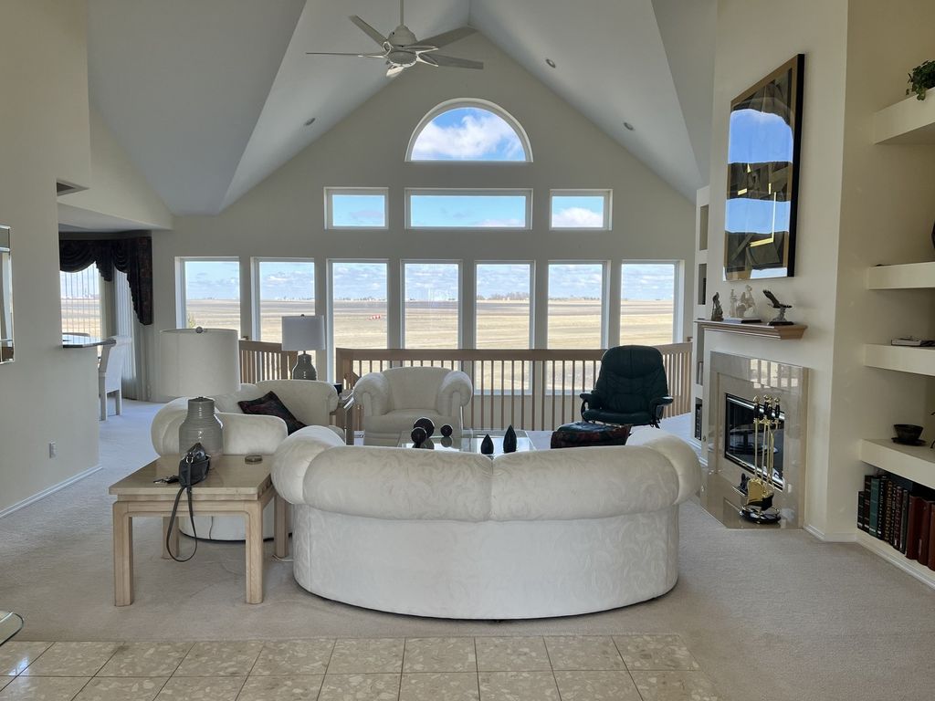 *** Stunning custom built 5,200 sf ATRIUM RANCH with 5 bedrooms, 4.5 baths, and attached 3 car garage. Elegance is apparent as you enter the formal open concept living room with soaring vaulted ceilings and skylights. Floor to ceiling windows reveal gorgeous prairie sunsets. Living room has gas fireplace & unique built-ins; music room and formal dining room (both with bay windows) flow from the living room. Kitchen has 42" maple cabinets, cooktop island, and Granite counter tops. Sitting/sunroom off kitchen. First floor master bedroom has private deck, large spa bath, walk in closet; Second 1st floor bedroom/office has large closet and Bath. Large laundry room with washer, dryer, sink, cabinets, built-in wall ironing board. Lower level has a self-sustaining atrium, gas fireplace, built-ins, billiards room, wet bar, weight room, 2 full baths, and 3 guest bedrooms. Wonderful home to entertain or host guests. Attached 3 car garage sports-finished walls and epoxy floor with inlaid multi-colored chips. ****** The detached 3,000 sf structure for collector/equipment storage heated and air-conditioned has office with full bath ****** This extraordinary property is a dream come true! There are 41 acres total with 12.76 acres farmland (in production) plus 9.8 acres in the USDA Pollinator Program, 10.8 acres are in the Airport and taxiway. ****** Land is zoned A2 farm if a Buyer wanted an alternate use for the property. Farming and other uses possible . . . maybe horses or other possibilities Property is ready for your ideas and dreams. ******