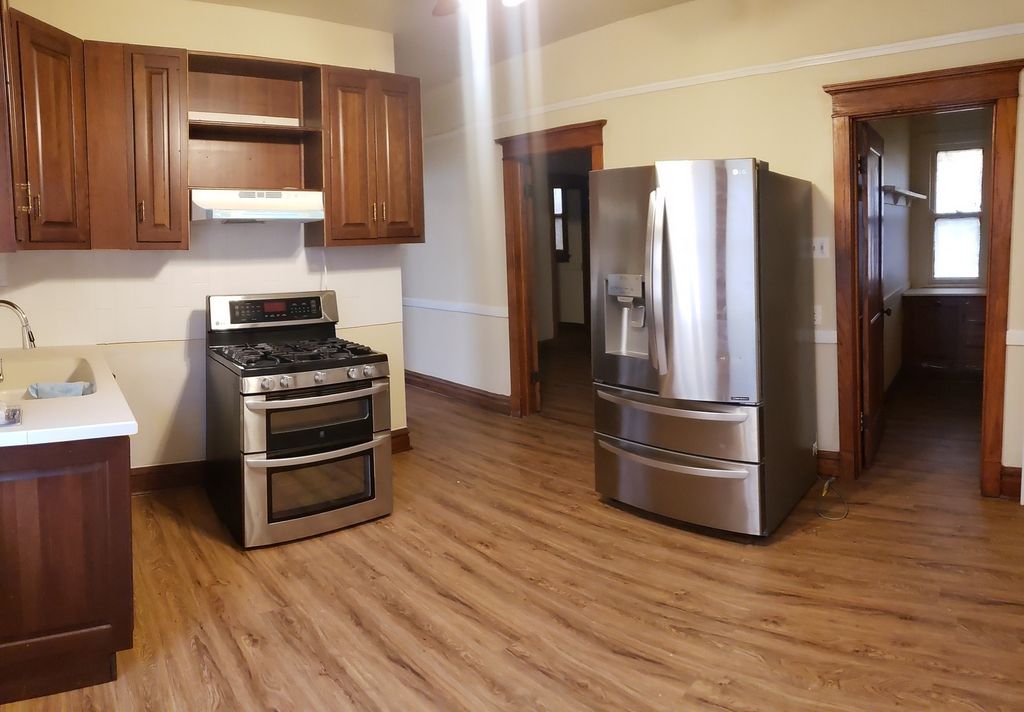 VERY NICE & LARGE 1ST FLOOR 2BR APARTMENT WITH NATURAL WOOD TRIM ALL AROUND, HARDWOOD FLOORING, CEILING FANS IN EVERY ROOM, FULL LIVING ROOM AND SEPARATE DINING ROOM. THERE'S A WIDE KITCHEN WITH TABLESPACE AND A FULL PANTRY, STAINLESS STEEL APPLIANCES. LOTS OF LIGHT COMES INTO THIS WEST-FACING UNIT. DID I MENTION THAT THE HEAT, AC AND ELECTRIC UTILITIES ARE INCLUDED EXTRA STORAGE SPACE IN THE REAR ENCLOSED PORCH. PLENTY OF CLOSETS! SORRY NO PETS. COME READY TO APPLY! ONE MONTH'S RENT AND ONE MONTH'S SECURITY DEPOSIT EXPECTED AT THE ONE-YEAR LEASE SIGNING. TEXT L/A TO REQUEST SHOWING.